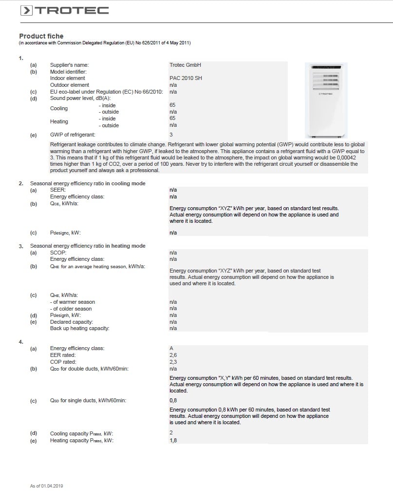 | Gamintojo kodas | Trotec PAC 2010 SH |