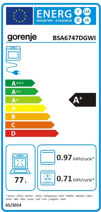 | Orkaitės ertmės energijos suvartojimas ciklui | 0.66 |